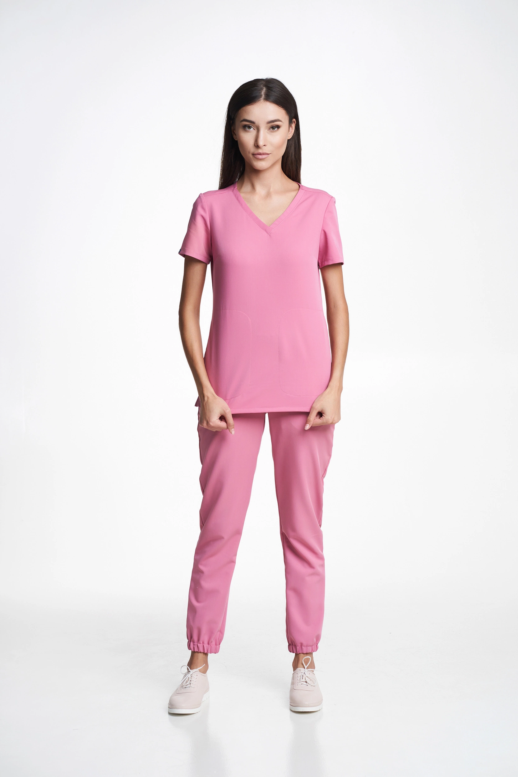 - The SORA medical top combines sporty elegance with functionality, offering a perfect fit, comfort, and a modern look. Its discreet pockets and delicate V-neckline make it ideal for professionals who value style and practicality at work.
