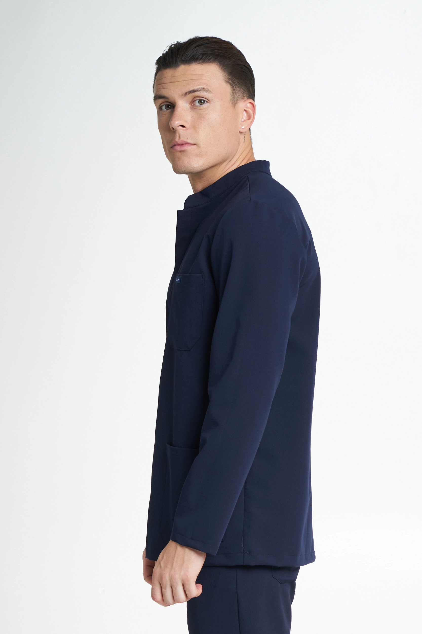 Komplet medyczny męski CILFRI łączy w sobie elegancję i profesjonalny charakter bluzy BACOLI z wygodą i sportowym stylem spodni PRATO. Zestaw stworzony z myślą o wymagających warunkach pracy, zapewnia maksymalny komfort, funkcjonalność i spójny, nowoczesny wygląd.
